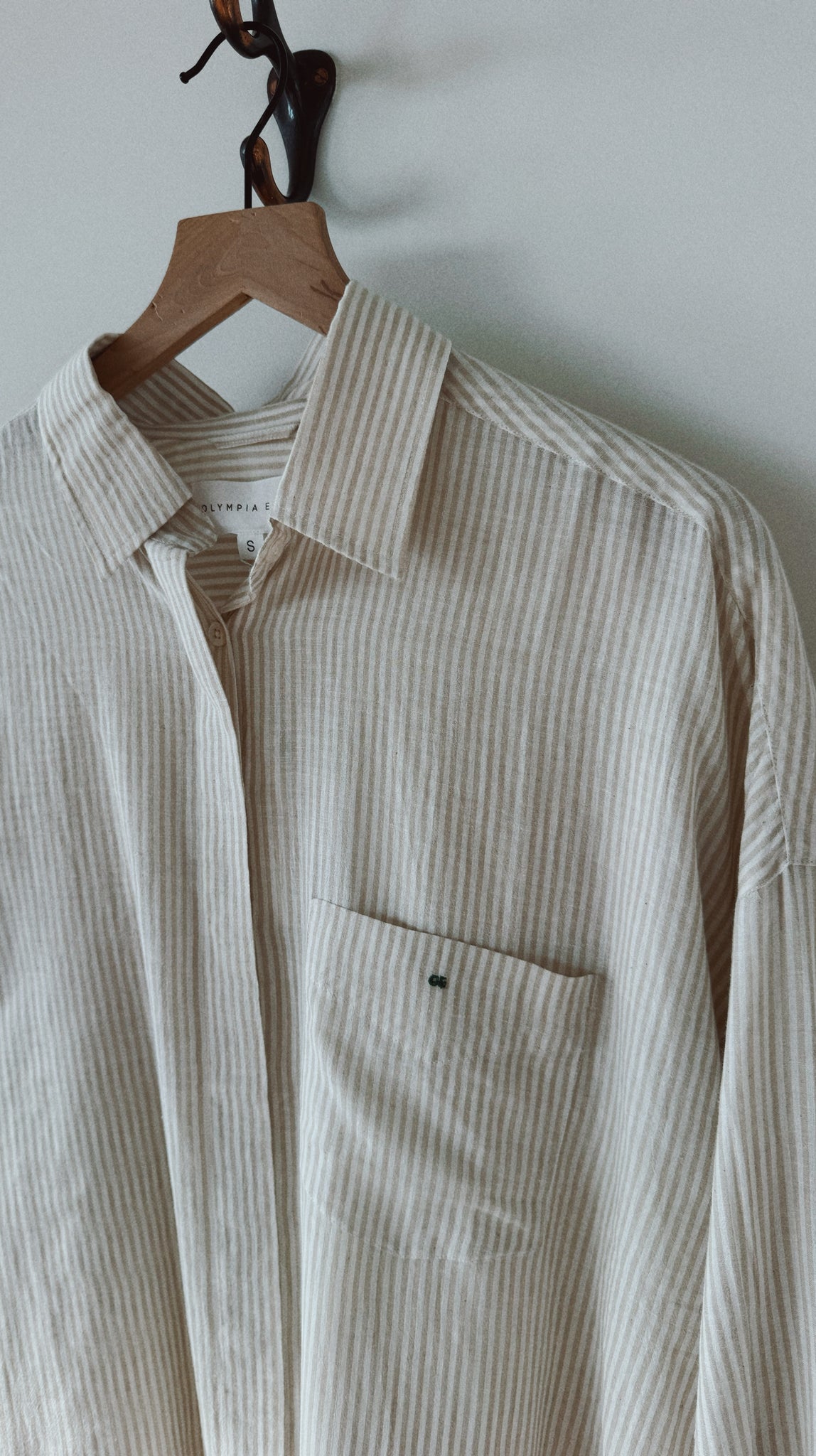 Oversized mens style button down — our must have wardrobe essential. Indian hand loomed cotton, lightweight and delicate. O.E embroidery pocket detail. Only offered in size small (one size fits most)