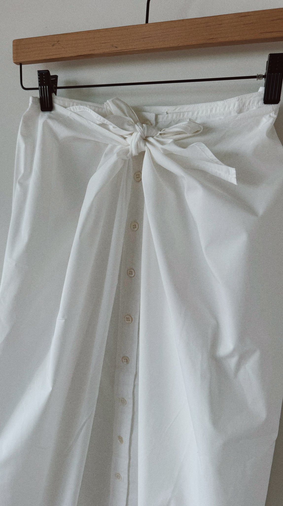 A maxi skirt inspired by our Kimono dress... button down front and wrap around tie closure can be worn in the front or back.